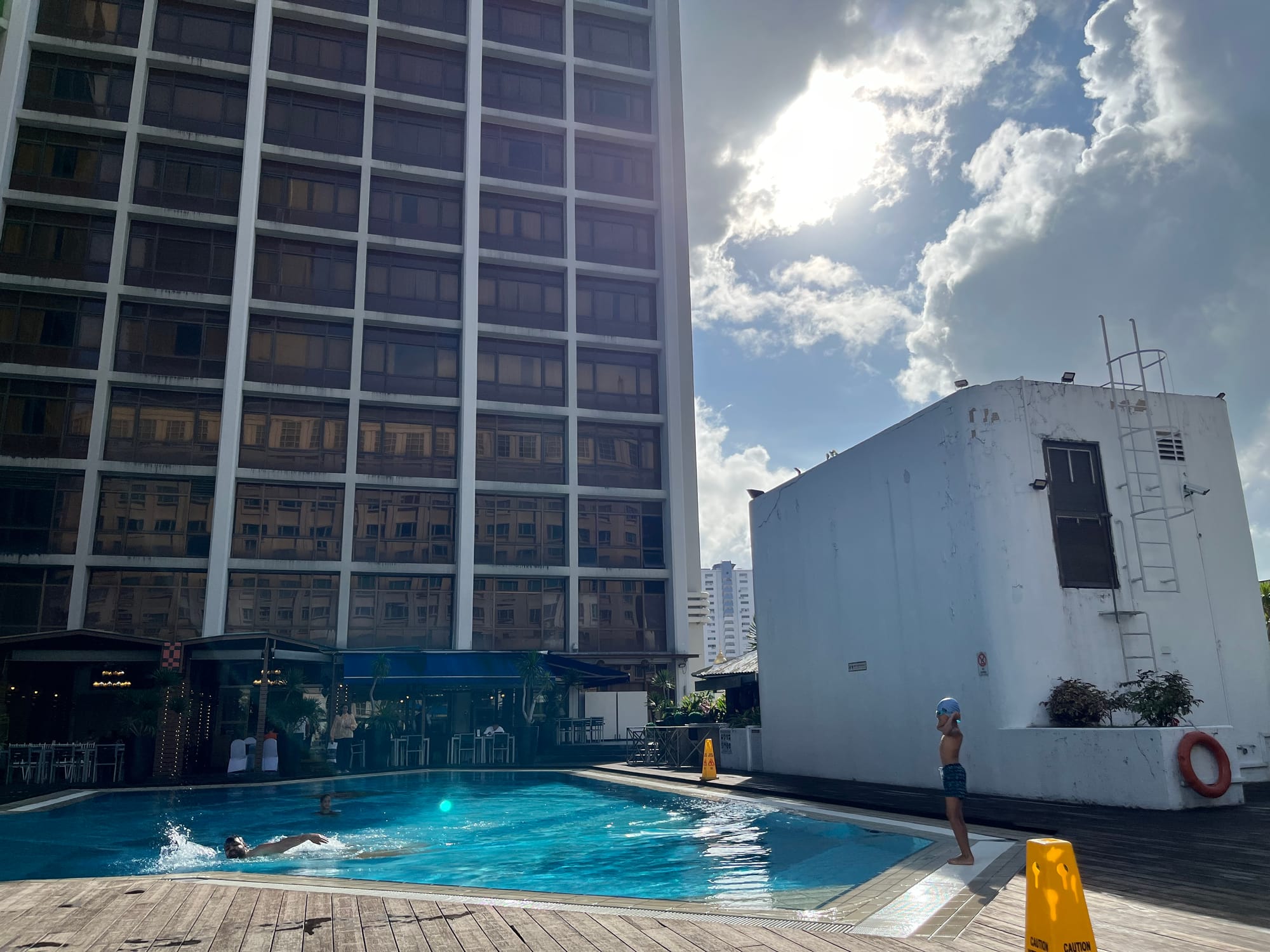When we got to the hotel, it was too earlier so we can't checked in yet. But we found out that we can refresh in the bathroom by the pool. And yes, this hotel has a pool!!